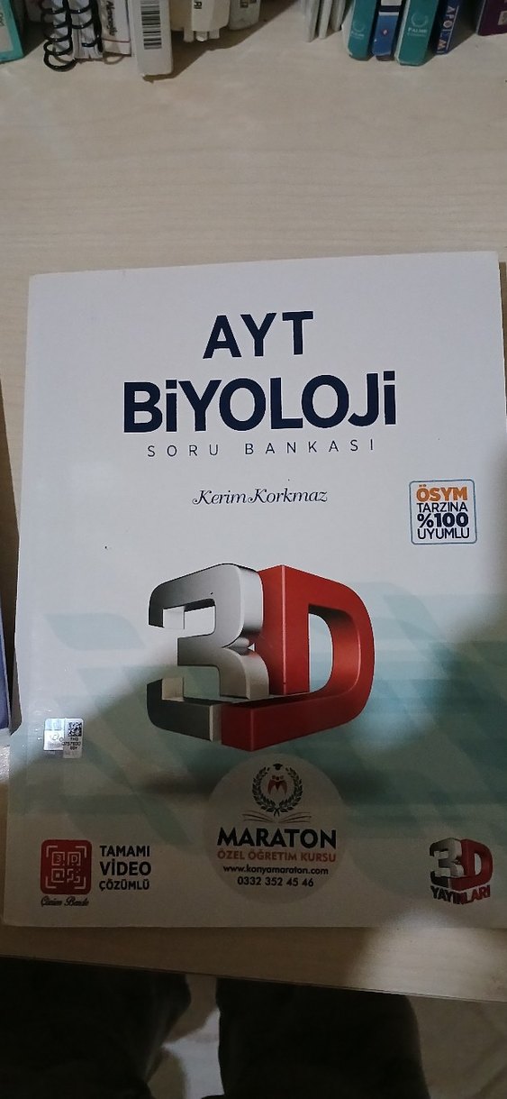Kerim Korkmaz imzalı AYT Biyoloji soru bankası, 3D video çözümleriyle ÖSYM tarzına %100 uyumludur. Etkili sınav hazırlığı sağlar. 3 konu çözdüm alan değiştim alana hayırlı olsun