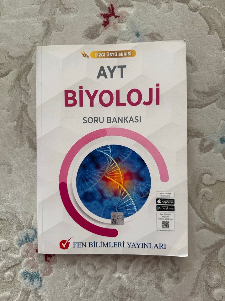 Fen Bilimleri Yayınları tarafından hazırlanan AYT Biyoloji soru bankası, çizgi üstü serisi ile biyoloji konularında kapsamlı soru pratiği sunar. Üreme sistemi ilk dört test, gen proteine ilk sekiz test, canlılarda enerji dönüşümler ilk sekiz test çözülmüştür geri kalanı boştur