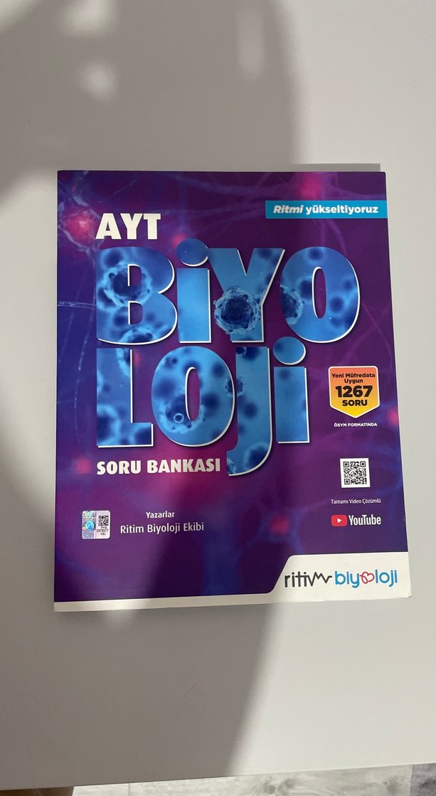 Yeni müfredata uygun 1267 soruluk AYT Biyoloji soru bankası. YouTube'da Ritmi Biyoloji ekibi tarafından hazırlanmış tam video çözümleri içerir.
