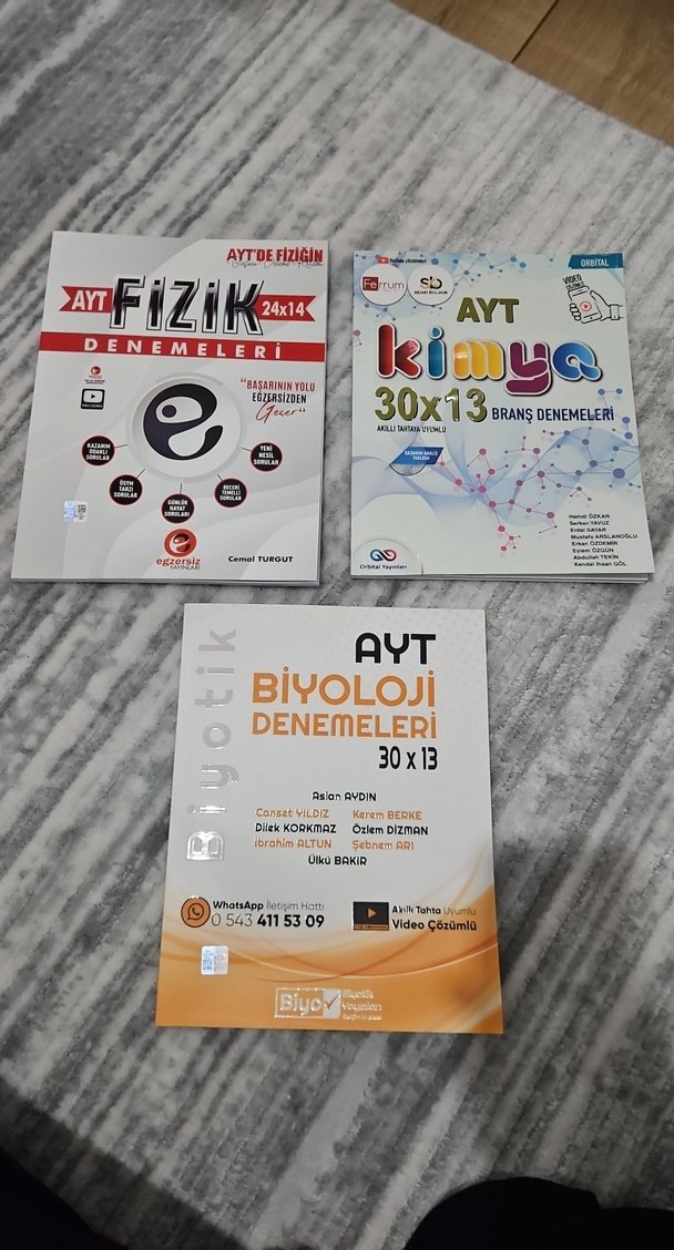 2024-2025 basım Biyolojiden 1 deneme çözüldü diğerleri sıfır İstediğiniz denemeler hakkında bilgi veriniz Bir deneme kitabı fiyatıdır Fizik denemesi satılmıştır