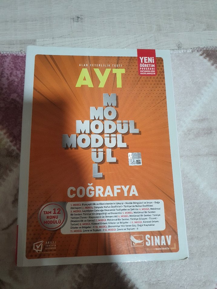 AYT Coğrafya modül kitabı, yeni müfredata uygun tam 12 konu içerir, sınav hazırlığı için uygundur.