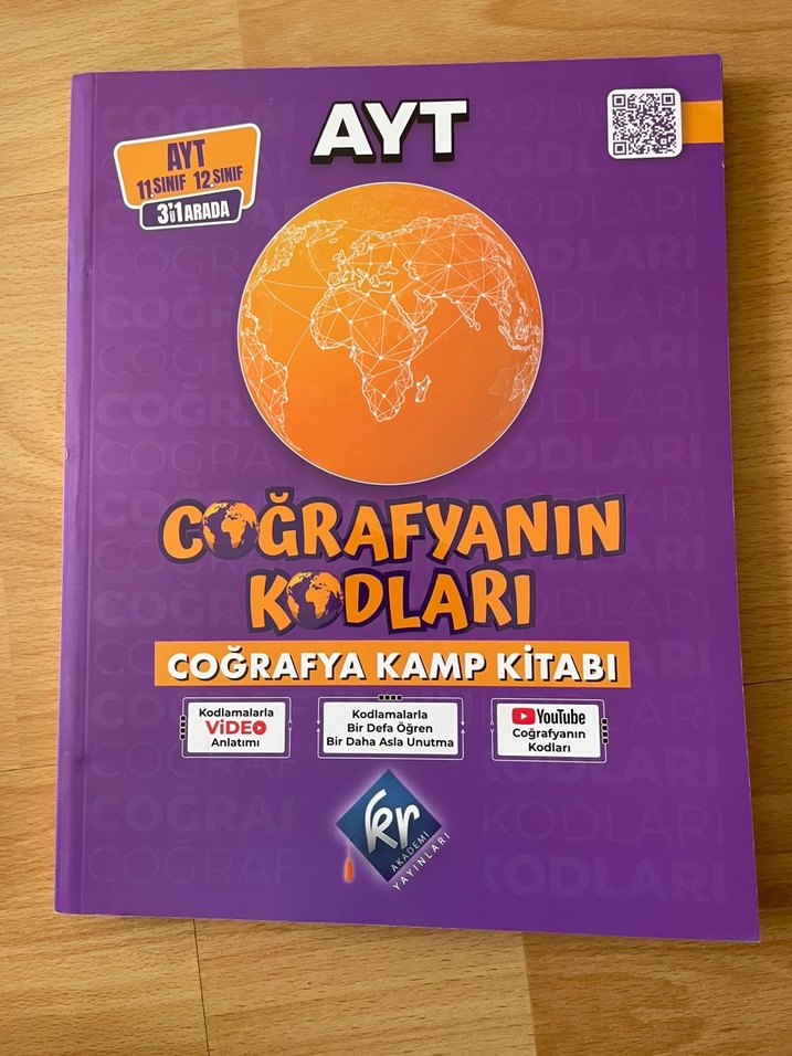 AYT Coğrafya Kamp Kitabı 'Coğrafyanın Kodları' video anlatım, tekrar kodları ve YouTube coğrafya kodları ile destek sağlar. 11. ve 12. sınıflar için uygundur.