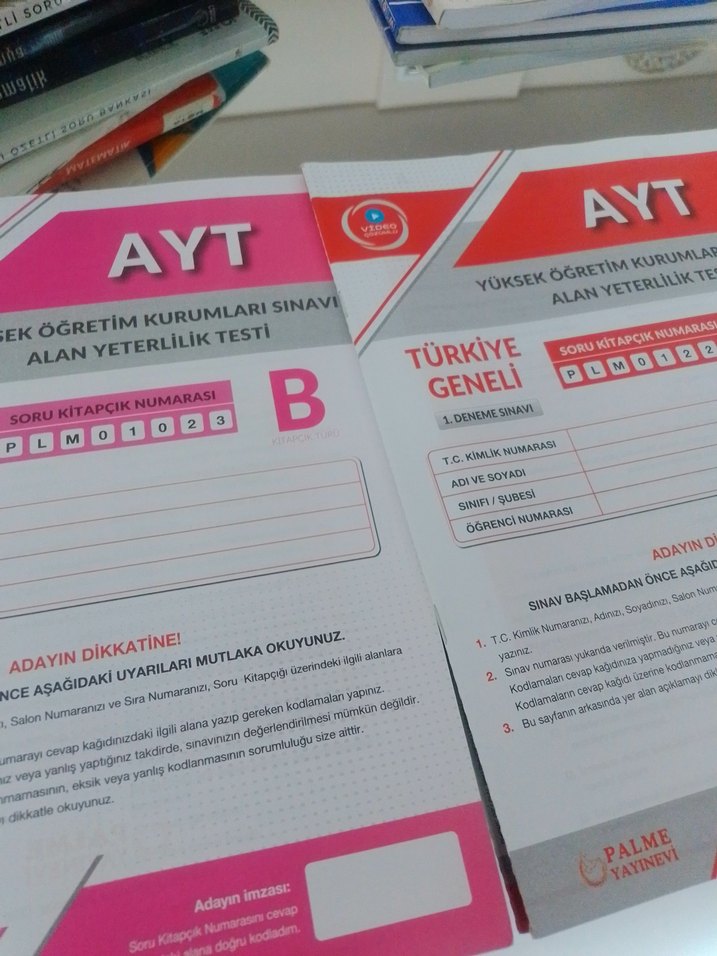 Palme Yayınları tarafından hazırlanan AYT Alan Yeterlilik Testi kitapları, sınav öncesi aday bilgileri ve önemli uyarılar içerir. sadece fen kısmı çözüldü diğer sayfalari boş