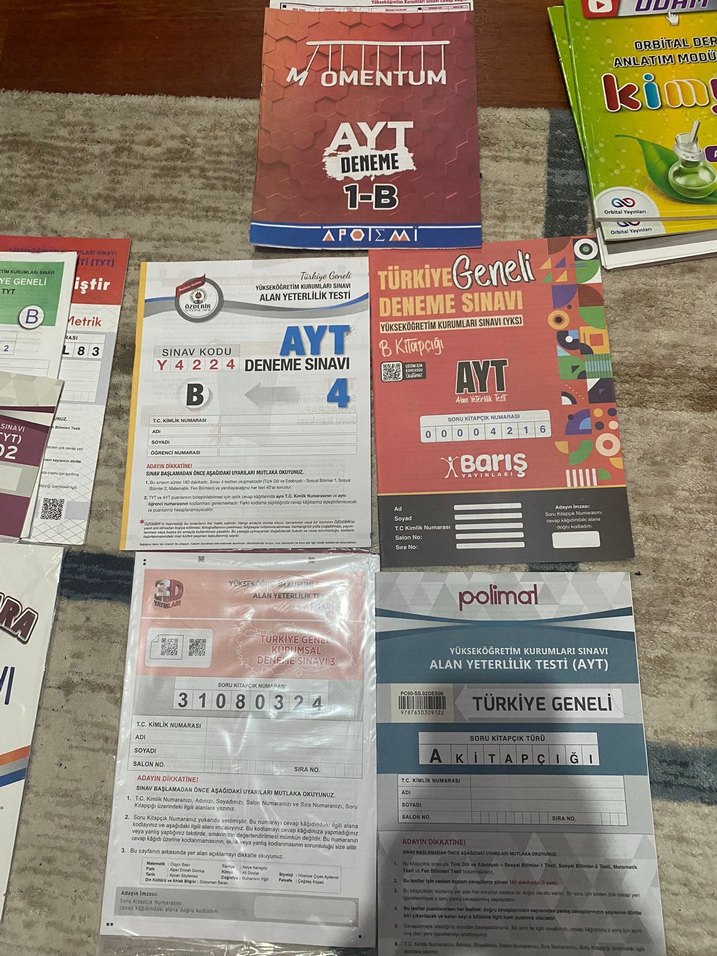 Momentum, Polimal ve Barış yayınevlerine ait Türkiye geneli AYT deneme sınavları seti.