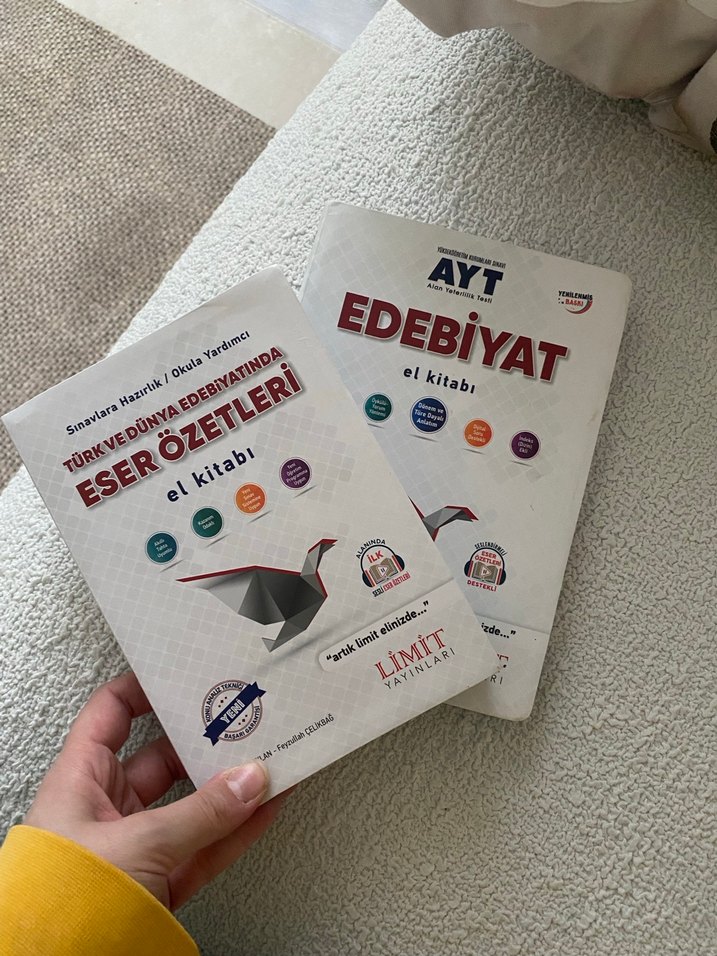 Limit Yayınları tarafından hazırlanan AYT edebiyat el kitapları, Türk ve dünya edebiyatı eser özetlerini içerir, sınav hazırlığı için uygundur. Herhangi bir hasarı yoktur