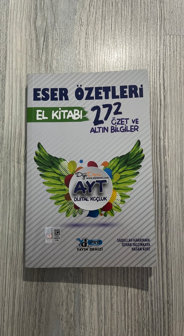 AYT sınavına yönelik 272 eser özeti ve altın bilgiler içeren, dijital koçluk destekli bir el kitabı. Sadece ilk sayfası biraz ayrıldı o kadar