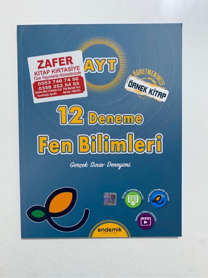 AYT Fen Bilimleri için 12 deneme sınavı içeren, gerçek sınav deneyimi sunan, video çözümlü ve kapsamlı içerikli kitap.