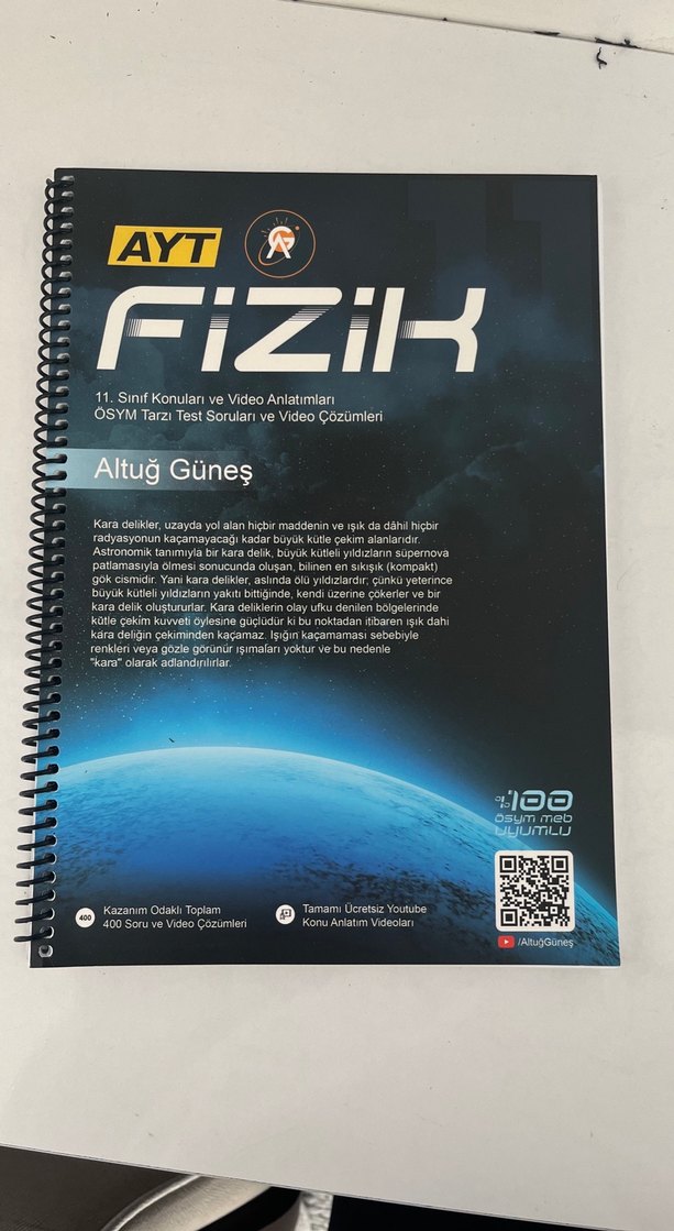 Altuğ Güneş imzalı AYT Fizik kitabı, 11. sınıf konularını OSYM tarzı test soruları ve video çözümleriyle sunar. 400 soru ve video anlatımları içerir.