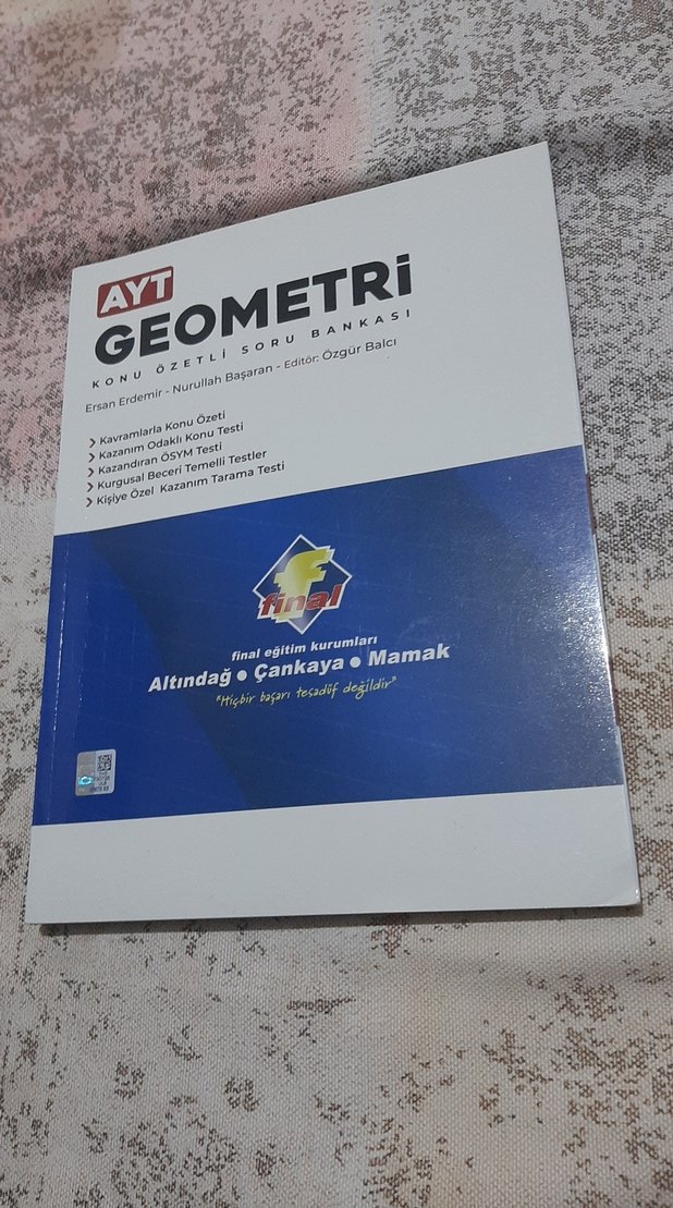 Final Eğitim Kurumları tarafından yayımlanan AYT Geometri soru bankası, konu özetleri, çoktan seçmeli sorular ve özel tarama testleri içerir.