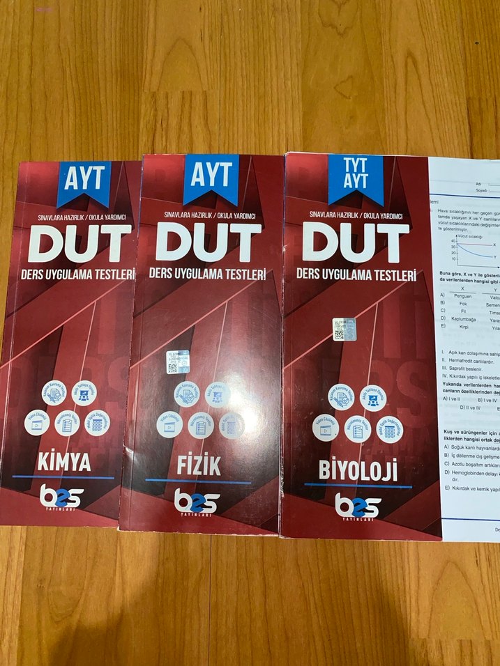 Kimya, Fizik ve Biyoloji derslerine yönelik AYT DUT sınav hazırlık kitapları seti, bol uygulama testli. YAPRAK TEST ŞEKLİNDE VE ÇOK KALİTELİ