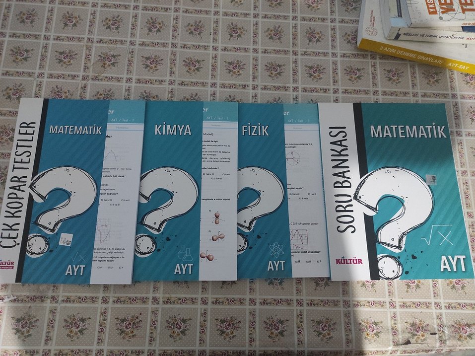 Kültür yayınevinin AYT Matematik, Kimya ve Fizik soru bankası seti. Önemli konularda pratik yapmanıza yardımcı olur YENİ KULLANMADIM İHTİYACIM OLMADIĞI İÇİN SATIYORUM