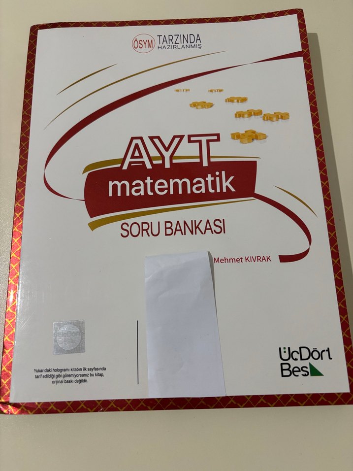 Mehmet Kıvrak tarafından hazırlanan, ÖSYM tarzında AYT matematik soru bankası, ÜçDörtBeş yayınevi tarafından sunulmuştur.