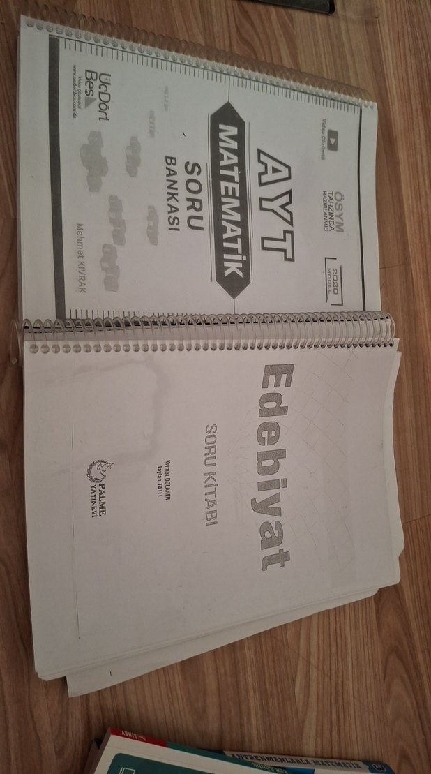 AYT Matematik soru bankası ve Edebiyat soru kitabı, spiral ciltli ve sınava hazırlık için uygun. mat.ın sadece 20syf sı çözülü .edebiyatın ise 4.üniteye kadar