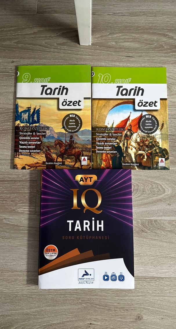 9. ve 10. sınıf tarih özet kitapları ile AYT IQ Tarih soru bankasından oluşan set. Konu özetleri, stratejiler, çözümlü sorular ve sınav ipuçları içerir.