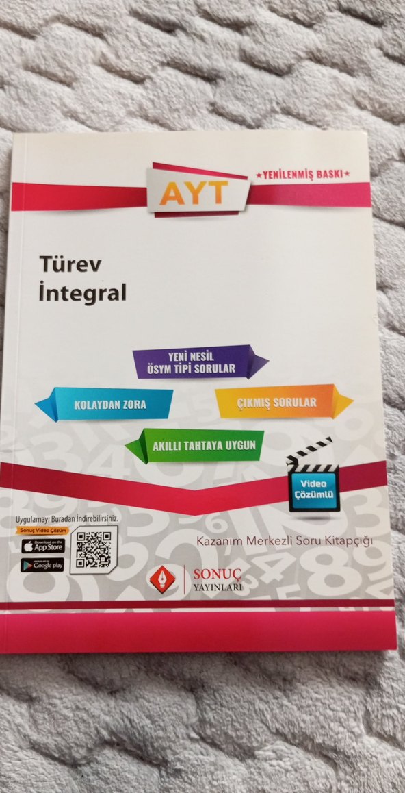 AYT Türev ve İntegral konularını kapsayan, akıllı tahtaya uygun yenilenmiş baskı. Yeni nesil ÜSYM tipi sorular, kolaydan zora ve çıkmış sorular içerir.