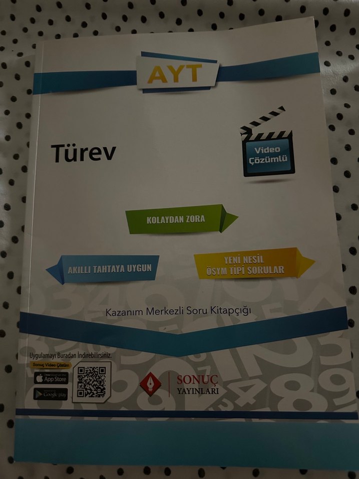 AYT türev konusunu kapsayan, video çözümlü, akıllı tahtaya uygun, kolaydan zora sorular içeren kazanım merkezli soru kitapçığıdır.