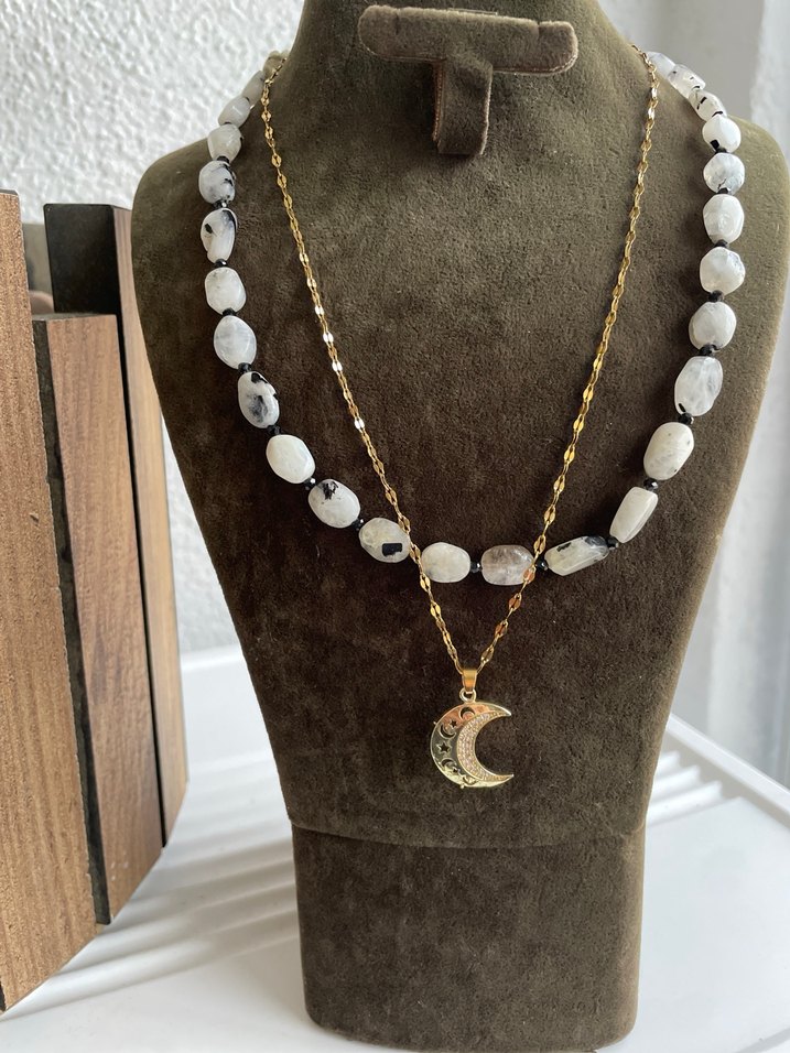 Aytaşı ve çelik ikili Ay Kolye