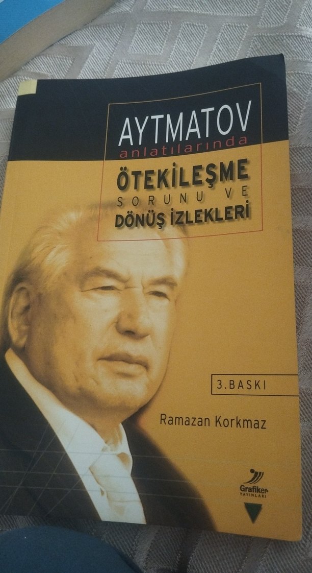 Ramazan Korkmaz'ın Aytmatov anlatılarında ötekileşme sorunu ve dönüş izleklerini ele aldığı 3. baskı tarih kitabı. Grafiker Yayınları.