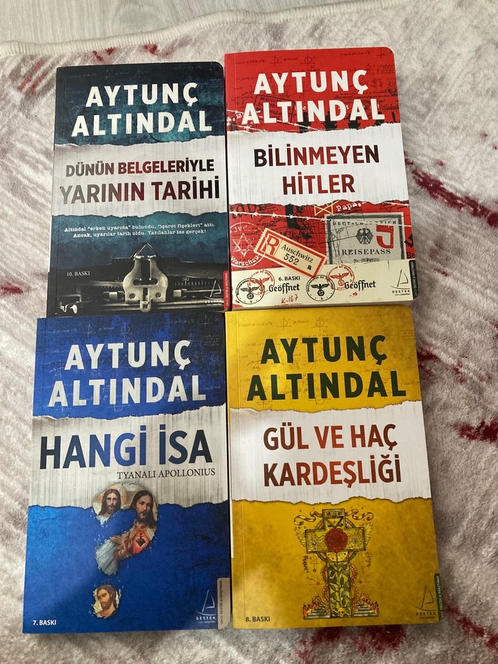 Aytunç Altındal'ın bilinmeyen Hitler, yarının tarihi, hangi İsa ve Gül ile Haç kardeşliği konularını içeren 4 kitaplık seti. Sadece Bilinmiyen Hitler kitabında ikinci görseldeki gibi ütü çizilen yerler vardır onun dışındaki tüm kitaplar yeni kitaplardır