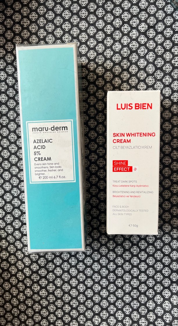 Maru-Derm Azelaik Asit %5 krem cilt tonunu eşitler ve pürüzsüzleştirir. Luis Bien Cilt Beyazlatıcı Krem koyu lekeleri tedavi eder, cildi aydınlatır ve yeniler.