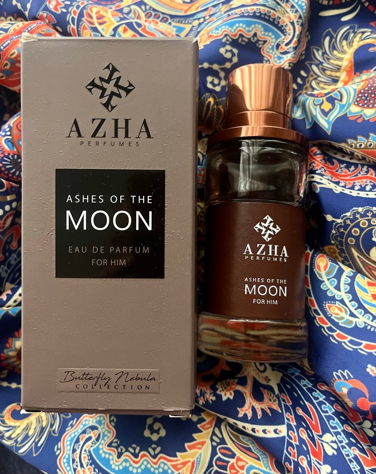 Azha Ashes of the Moon, koyu kahverengi şişede ve kutusunda bohem tarzda erkekler için eau de parfumü orijinal BAE Dubai den ithal ve orijinaldir..kapağı şık mıknatıslı özel 100 mg lık şişede 70 mg civarı doluluktadır.Tütün notası sevenler kaçırmasın son derece performanslı ve yayılımı müthiş maskülen ve klas bir tütün&ud yorumu 4 mevsim de kullanılabilir bence tom ford un tütün yorumlarını sollar bu koku..alanı pişman etmez