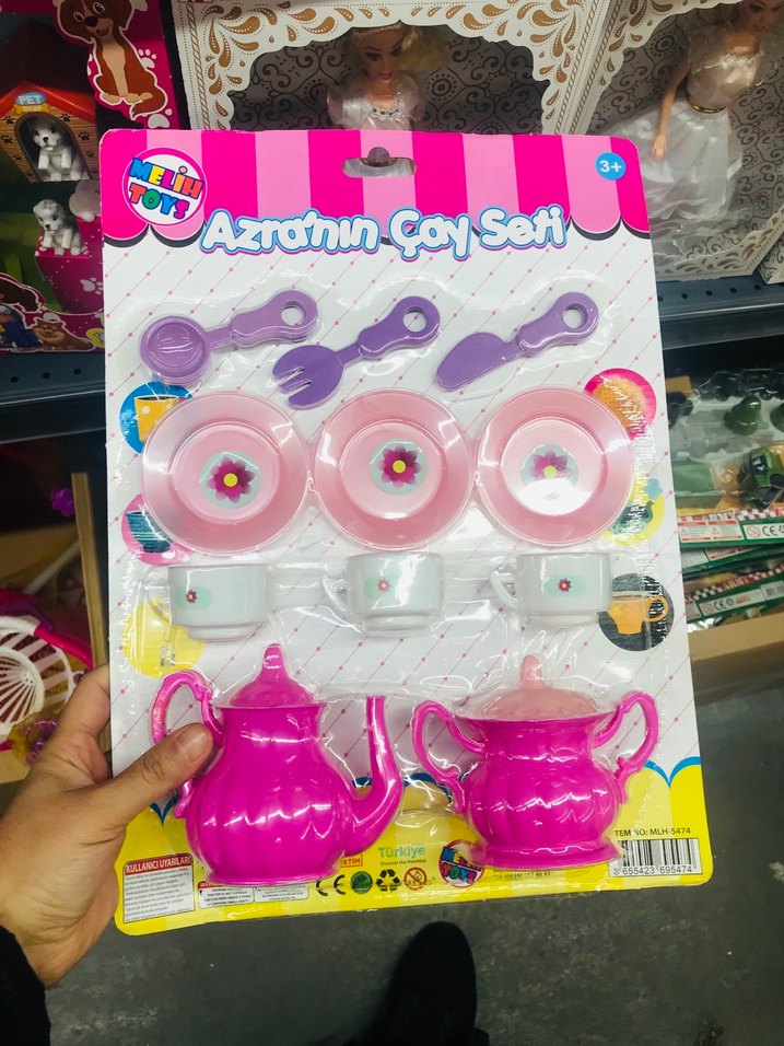 Azranın renkli çay seti, pembe çaydanlık, fincan, tabak ve çatal-kaşık bıçak içerir. 3 yaş ve üzeri çocuklar için uygundur. ☕