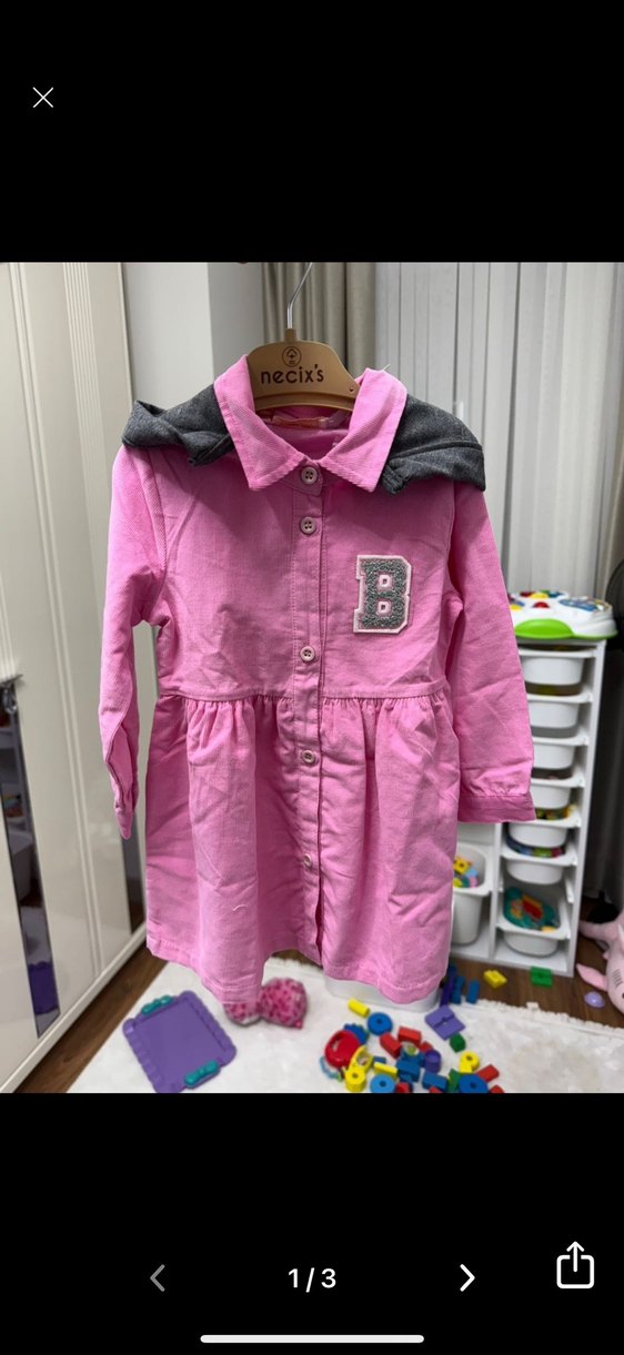 B&G marka Pembe Kapüşonlu Düğmeli Kız Elbisesi
