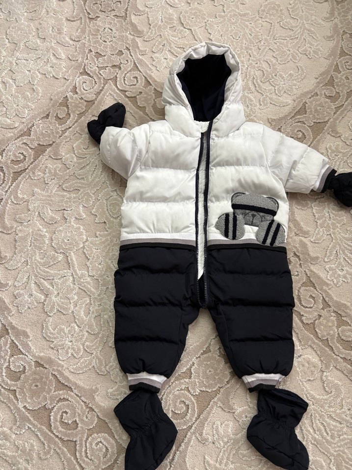 Beyaz ve siyah renk bloklu, kürk detaylı bebek tulumu. Yumuşak ve sıcak kumaştan, kapüşonlu, eldiven ve patikli, sokak tarzı kar tulumu. ❄️ Hediye gelmişti, bebeğimizin ayına uymadığı için 2-3 kere anca kullanabilmişizdir. Sıfır ayarındadır.