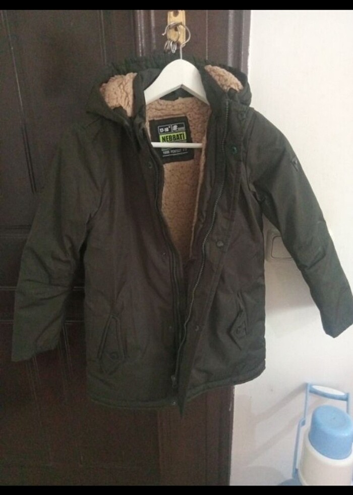 Haki yeşil kapşonlu içi yünlü 10 yaş 140 cm B&G store Nebbati erkek çocuk mont sorunsuz