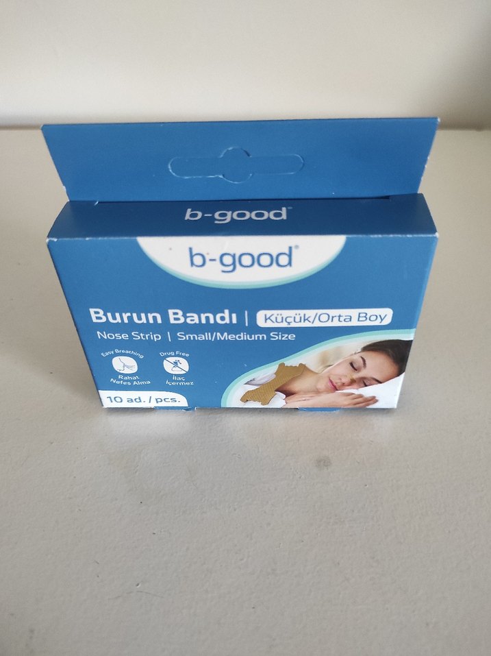 b-good burun bandı küçük/orta boy, nefes almayı kolaylaştırır. Paket içinde 10 adet bej ve gri tonlarında burun bandı bulunur. ️Hem yetişkinler için daha uygundur. eşim içerisinden 1 tane kullandı ama burnu büyük olduğu için satıyoruz
