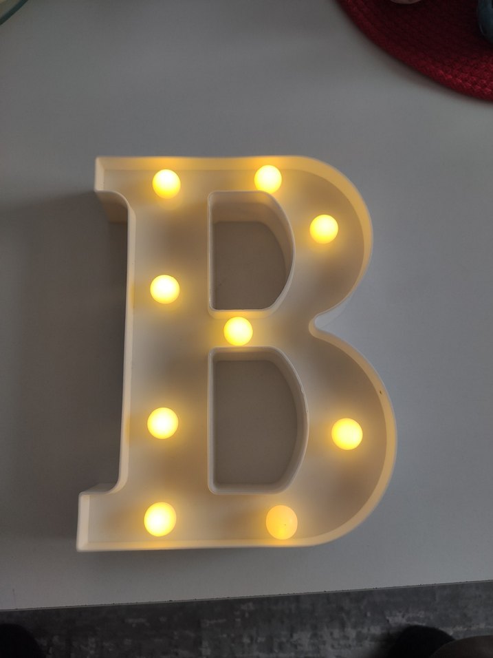 Sıcak ışıklı, beyaz renkte B harfi şeklinde LED gece lambası, dekoratif kullanım için uygundur.