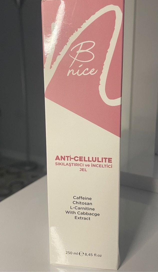 B nice Anti-Cellulite jel, kafein, chitosan, L-karnitin ve lahana özü içerir, cildi sıkılaştırmaya ve selüliti azaltmaya yardımcı olur.