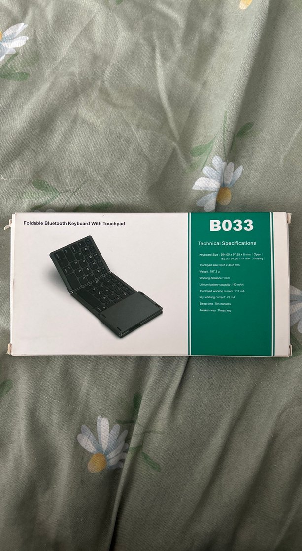 B033 katlanabilir Bluetooth klavye, touchpad ve kompakt tasarıma sahiptir. Kablosuz bağlantı ve şarj edilebilir batarya ile taşınabilirlik sağlar. ️
