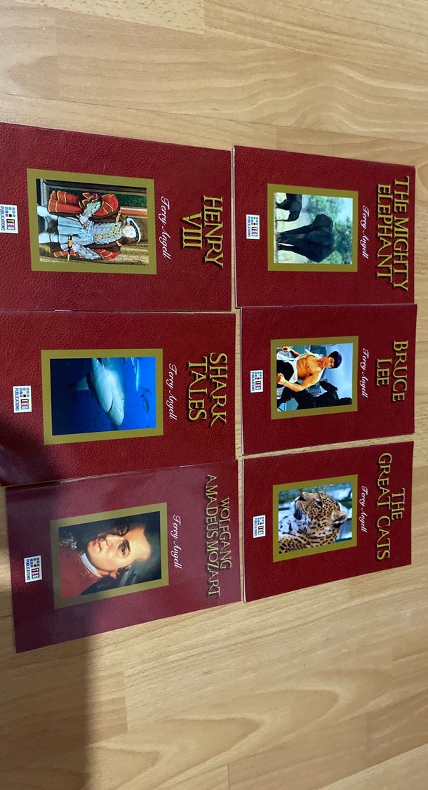 Tercy Argell'in Henry VII, The Mighty Elephant, Shark Tales, Bruce Lee ve The Great Cats gibi kitaplarından oluşan intermediate kitapları seti. Her kitap ilgi çekici hikayeler ve görseller içerir.