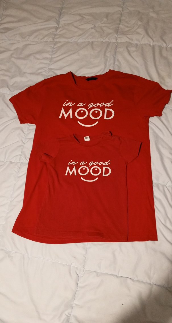 Unısextır baba_oğul yada anne_kız gıyebılır. Büyük tişört m beden küçük tişört 2_3 yaş içindır.