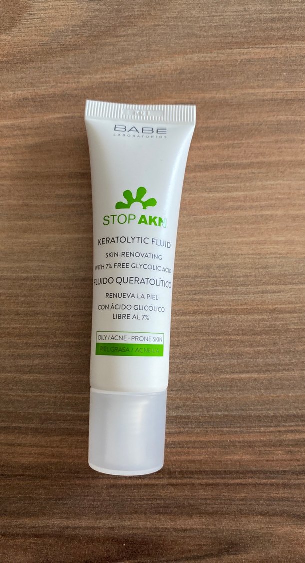 Babe Stop Akn keratolitik sıvı el kremi, %7 serbest glikolik asit içerir ve cildi yeniler. Yağlı ve akneye eğilimli ciltler için uygundur. ✋