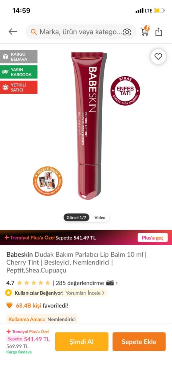 Babeskin Dudak Bakım Parlatıcı Lip Balm, peptit, shea ve cupuaçu ile besleyici ve nemlendirici bakım sunar. Kiraz tonuyla doğal renk ve parlaklık sağlar.