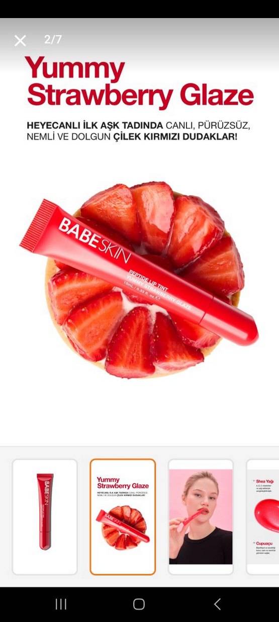 BABESKIN lip gloss, çilek kırmızısı canlı rengi ve nemli, pürüzsüz yapısıyla dolgun dudaklar yaratır. Canlı parlaklık sağlar. 10 ml hediye geldi sadece denemek amaçlı kullandım çok uyguna koyuyorum trendyolda 600