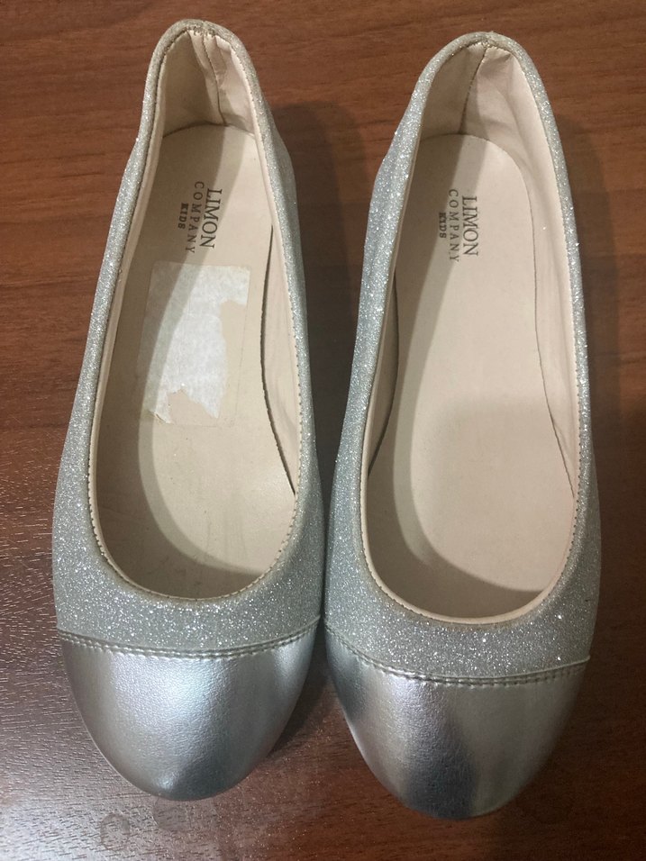 Kız çocukları için simli detaylara sahip parlak gri ballet flats. Klasik zarafeti sade tasarımla buluşturur. ✨ 34 numara