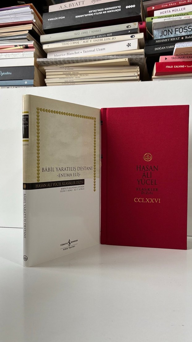 İş Bankası Kültür Yayınları Hasan Ali Yücel Klasikler Dizisi Ciltli, Şömizli Babil Yaratılış Destanı (Ciltli, Şömizli) Enuma Eliş: Evrenin, dünyanın, kozmik bölgelerin ve insanın yaratılışı, ardından da tüm bunları yaratan Babil tanrısı Marduk'un diğer tanrılar tarafından zikredilişini içeren bu destan, Gılgamış Destanı ve Babil Hemeroloji Serisi'nden sonra en iyi bilinen Mezopotamya eserleri arasında yer alır. Bu destan okullarda, tapınaklarda, yılın belli günlerinde belli ayinlerde okutulan kutsal bir kitap, edebi bir yapıt aynı zamanda da bir kültür hazinesi olarak Babil'de, Babil Devleti'nin Tanrı Marduk'u temel alan dini, kültürel ve siyasi mirası sayesinde de tüm Mezopotamya'da büyük saygı görmüştür. Babilceden Türkçeye ilk kez çevrilen Babil Yaratılış Destanı.