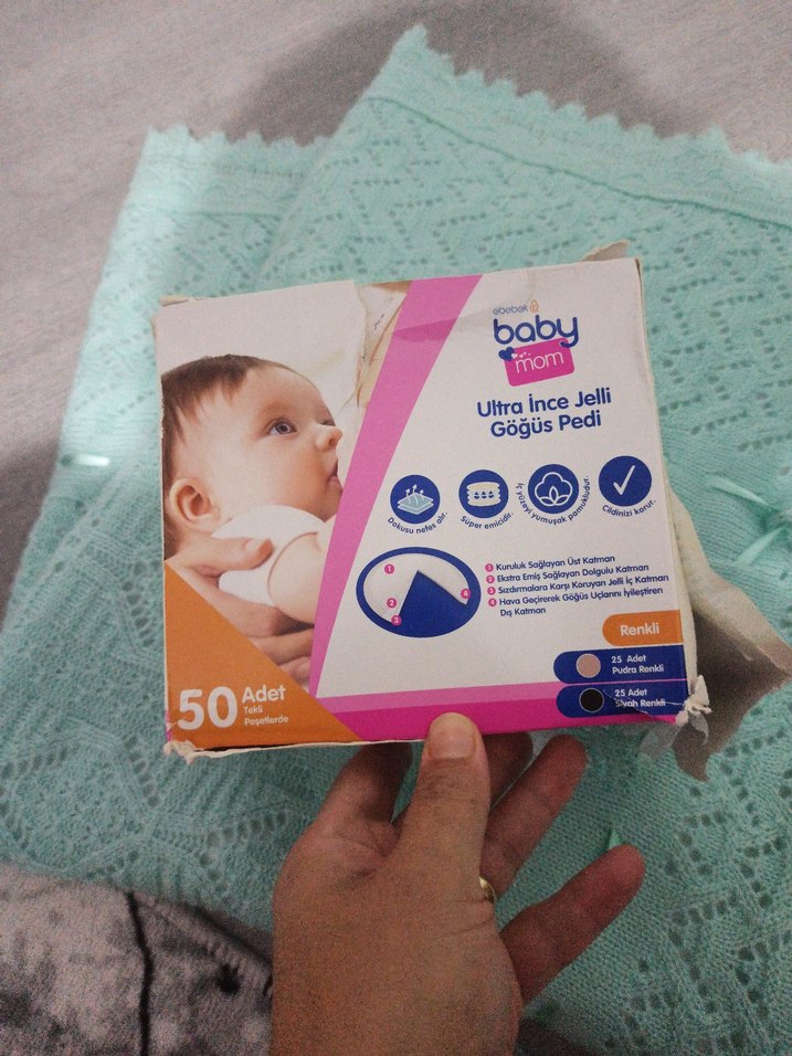 Babu ultra ince jelli göğüs pedi, pastel bej renkte, 25 ten rengi ve 25 beyaz olmak üzere toplam 50 adet konforlu ve emici pedi içerir.