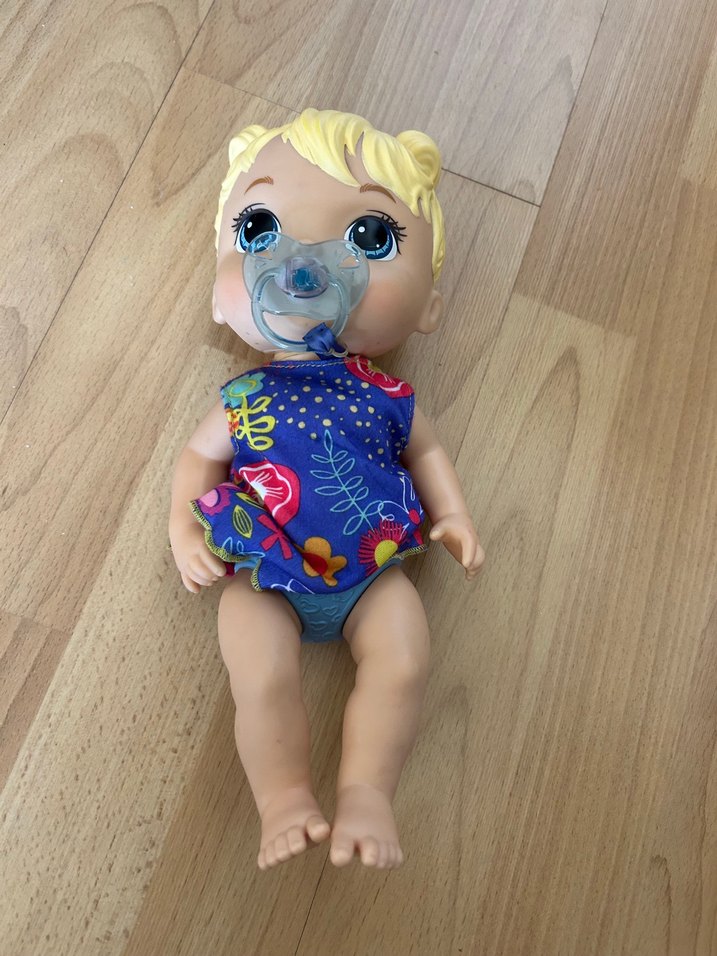 Canlı renklerde mavi elbise giyen, sarı saçlı ve emzikli oyuncak bebek. Baby alive Sevimli Bebeğim o kadar tatlı sesler çıkarıyor ki çocuklar onunla oynamayı çok sevecek. Onunla ilgilenilince gerçek bebek sesleri çıkarıyor; gülüyor, ağlıyor, esniyor, mızmızlanıyor ve mırıldanıyor. Yatağına konduğunda ve uyandırıldığında karşılık veriyor. Bebeğin sakinleşmesi için emziği ağzına koyduğunuzda emme sesleri çıkarıyor. Emziği çıkardığınız ise, gerçek bebek sesleriyle karşılık veriyor. Çocukların hayal gücünün gelişmesine yardımcı olmaktadır. 3 yaş ve üzeri çocukların kullanıma uygundur. 1 x 1,5V AA ile çalışmaktadır. Piller kutuya dahildir. Kutu İçerisinde; oyuncak bebek, giysisi ve emzik bulunmaktadır.