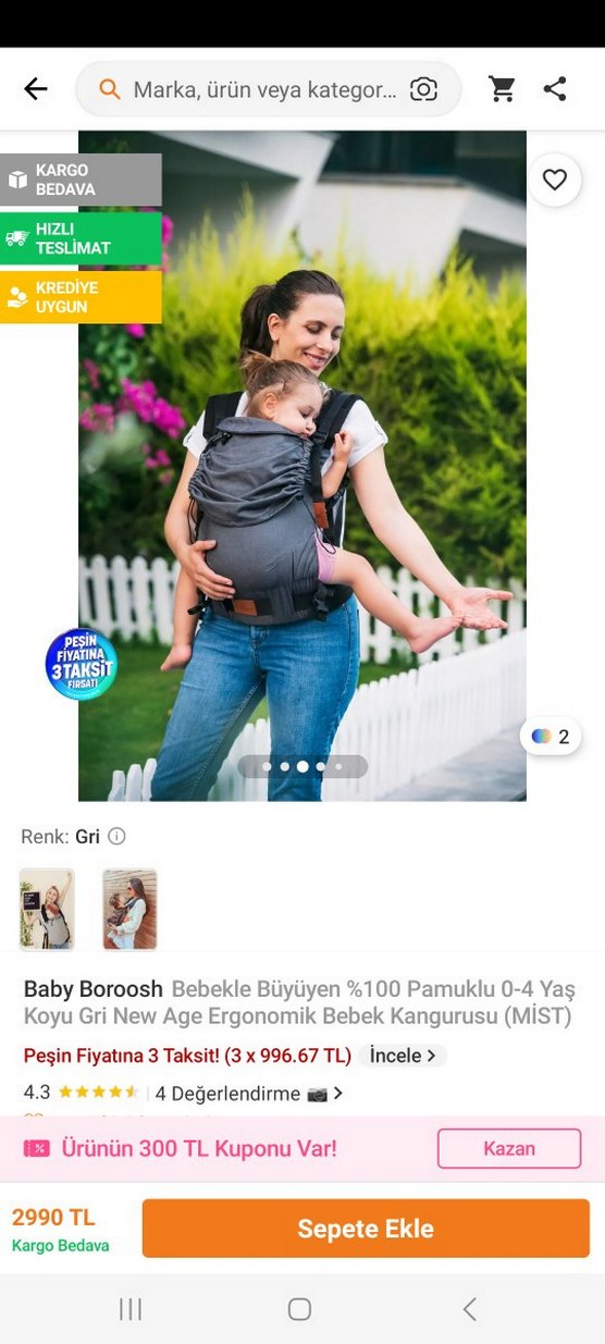 0-4 yaş bebekler için %100 pamuklu, ergonomik gri bebek kangurusu. Rahat taşıma ve destek sağlar. bebekle birlikte büyüyen