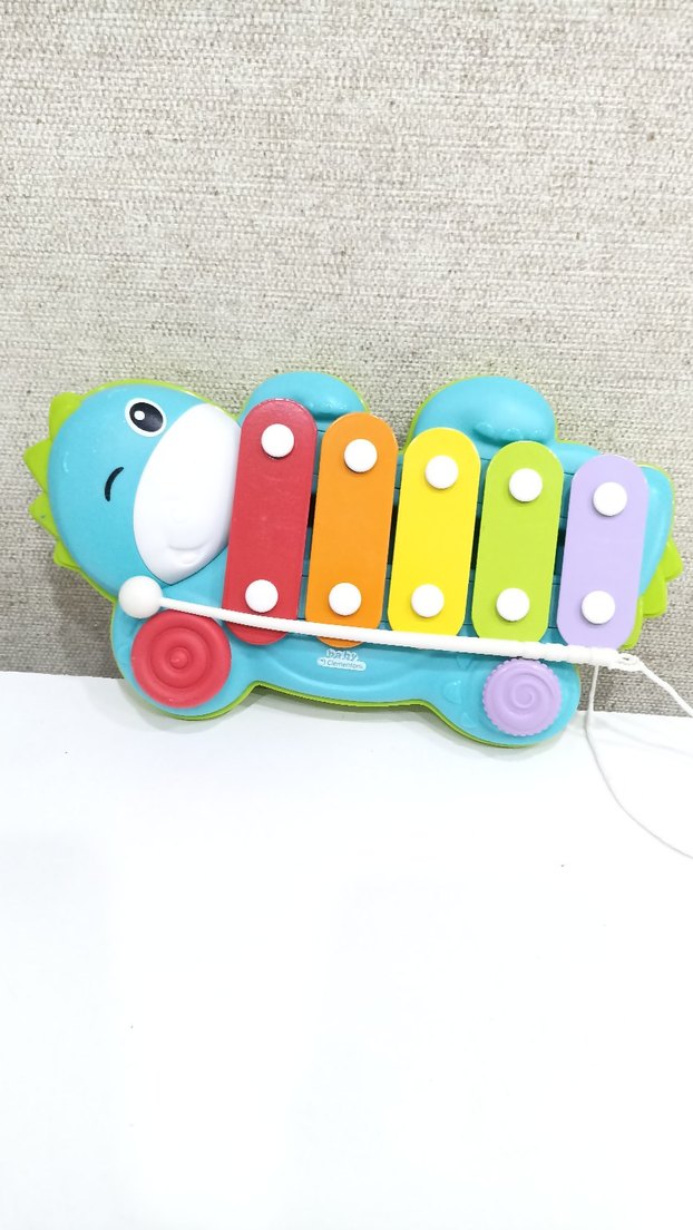 Canlı renklerde, dinozor figürlü eğitici oyuncak. Renkli tuşlu ksilofon ve çekmeli ip içerir.