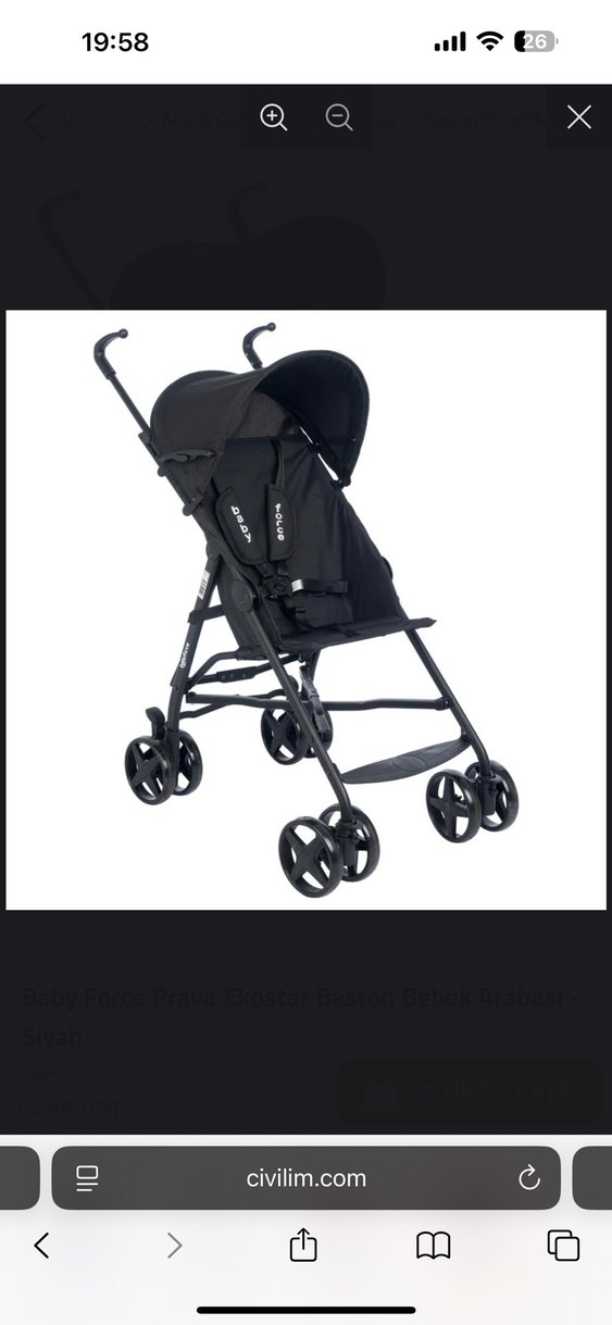 Baby Force siyah renkte, hafif yapılı baston bebek arabasıdır. Güneşlik ve güvenli kemerleri bulunmaktadır.