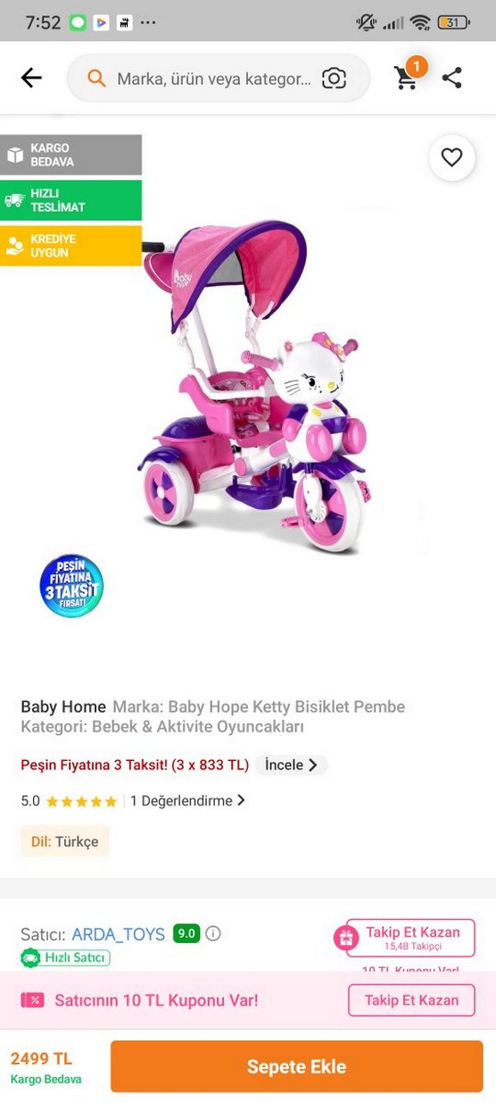 Birleştir KazanBu profilden birden fazla ürün seç, daha az öde!