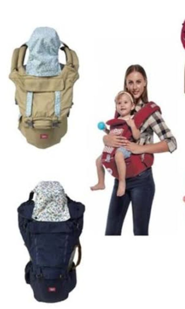 Ayarlanabilir askılar ve yumuşak kumaş kapüşonlu, konforlu açık camel renkli bebek taşıyıcı. Bel kısmı ile üst kısmı birleştirilen fermuar yeri bozuk fakat kullanıma engel değil klipsler kuvveti tasiyor