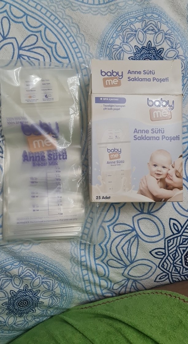 Baby Me anne sütü saklama poşetleri, 20 adetlik pakette sunulur. Çift kilitli yapısı ile sütü taze tutar.