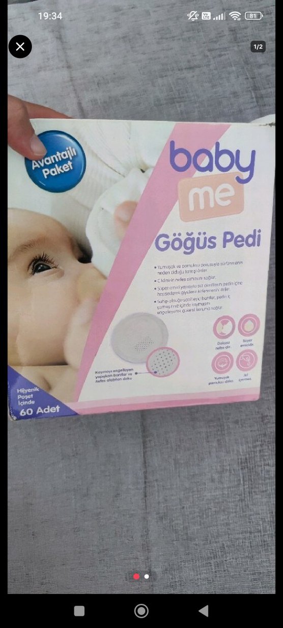 Baby Me pembe göğüs pedleri, 60 adet hijyenik pakette, nemi emerek cildi kuru ve rahat tutar.