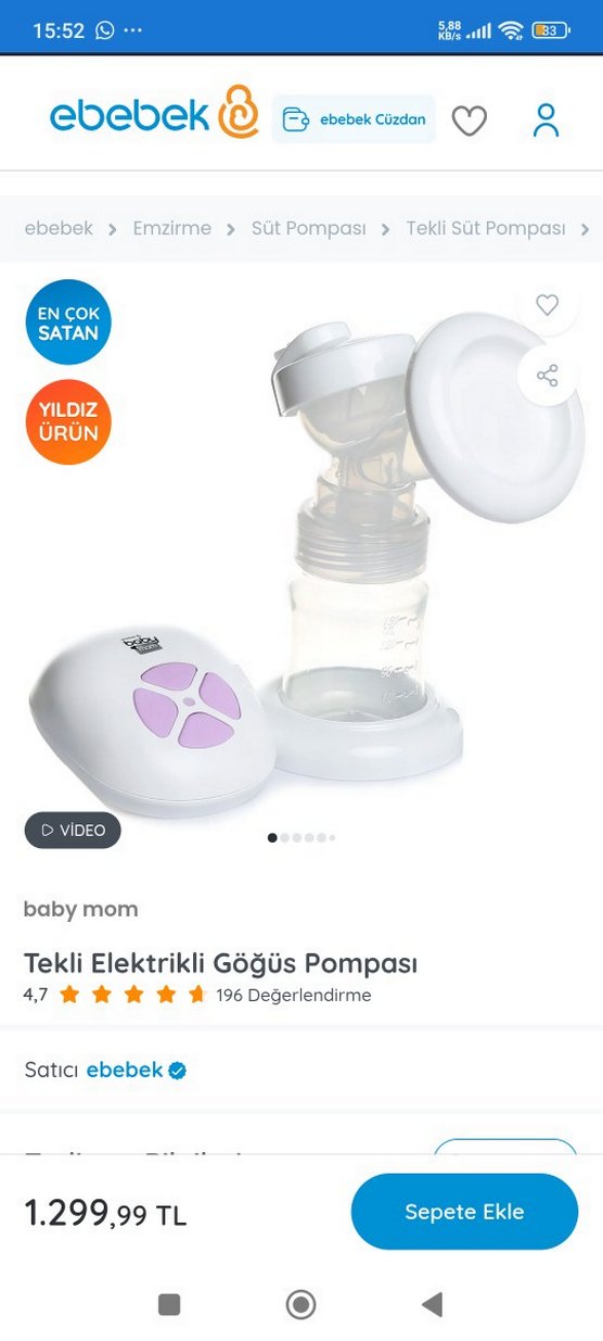 Baby Mom Tekli Elektrikli Göğüs Pompası Beyaz